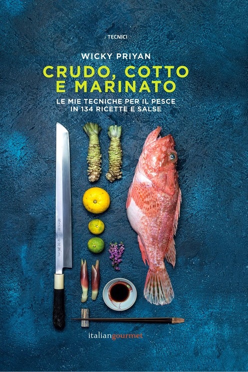 Potrebbe sembrare un libro di cucina giapponese, quella grande competenza sulla materia prima che l’Oriente sa tramandare, ma è più precisamente un libro di Wicky che è sì orientale ma anche un po’ europeo, cittadino del mondo e curioso di tutte le culture; è un volume di tecnica e creatività, di grandi ricette e ispirazioni. Italian Gourmet torna a parlare di cucina affidandosi a mani esperte, tra coltelli affilati, salse e marinature. Il pesce per Wicky è terreno d’elezione, quasi una vocazione, e nelle sue ricette, in particolare dalle tecniche di taglio e gestione, c’è tutta la sapienza giapponese tradizionale con tanta cultura gastronomica internazionale. Un fondamentale glossario conduce a scoprire le 134 ricette, divise per ingrediente: solo per citarne alcuni… Anemone fritto, catalana di aragosta, bianchetti fritti, carpaccio di dentice, zuppa di cavolfiore e granseola, nasello ai carciofi, e la tradizione è rispettata. Poi la contaminazione: carpaccio di mako garei, murici con riso, pancake di rossetti, pesce squadro in teriyaki, suro sushi, triglia con salsa tomarillo, tataki di tonno. Le oltre 130 ricette raccontano un mondo e un’esperienza che ha portato Wicky ai vertici della cucina milanese e non solo, la cui forza, al di là di una manualità esemplare e di una conoscenza delle tecniche vecchie e nuove di cucina altrettanto esemplari, è una inesausta capacità di conoscere e ricordare sapori e profumi di moltissimi ingredienti e la conseguente possibilità di fonderli in ricette nuove, che sono del tutto sue. Wicky cucina anche le carni ma stravede per il pesce. Tantissimi diversi pesci: qualcuno più conosciuto altri più rari, tutti disponibili in Italia. Ogni chef che li ama troverà tantissimi spunti che lo aiuteranno a crescere.