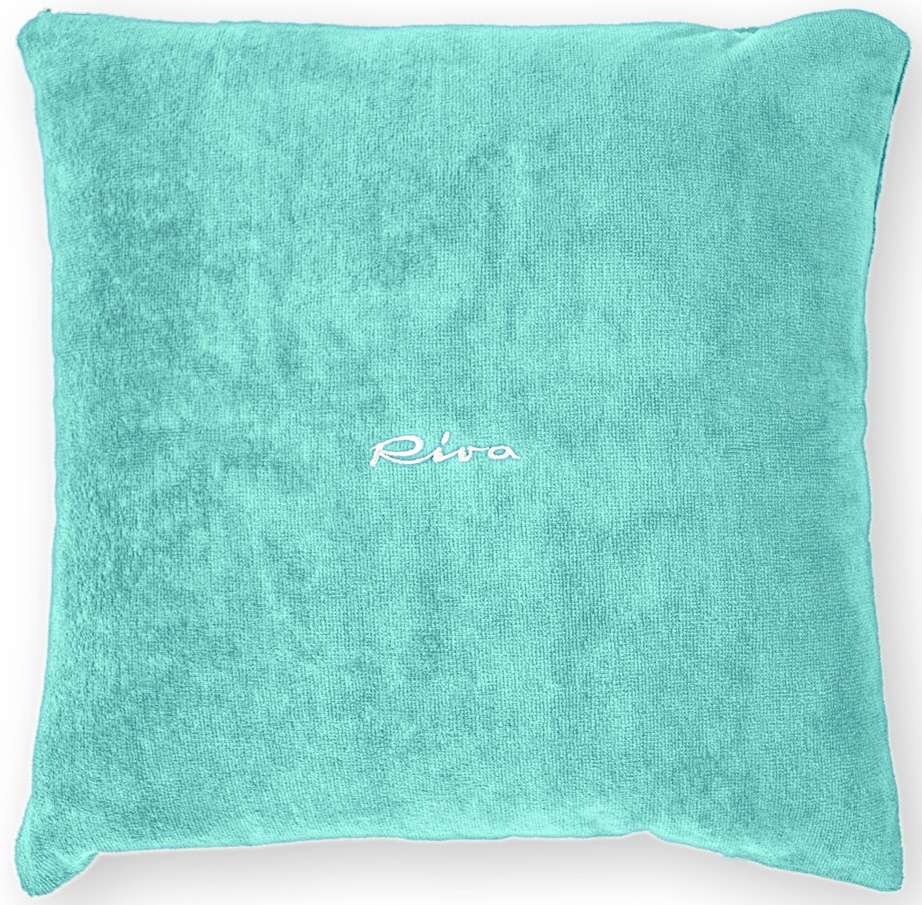 Nel salotto di casa o in barca, i cuscini Riva sono un complemento d’arredo originale ed esclusivo che conferisce personalità a ogni ambiente. Realizzati in spugna di cotone, nel colore acquamarina e con il logo ricamato in bianco, richiamano la morbida eleganza delle linee Riva, un must dello stile che ha fatto la storia del costume e della nautica. Misure: 40x40.