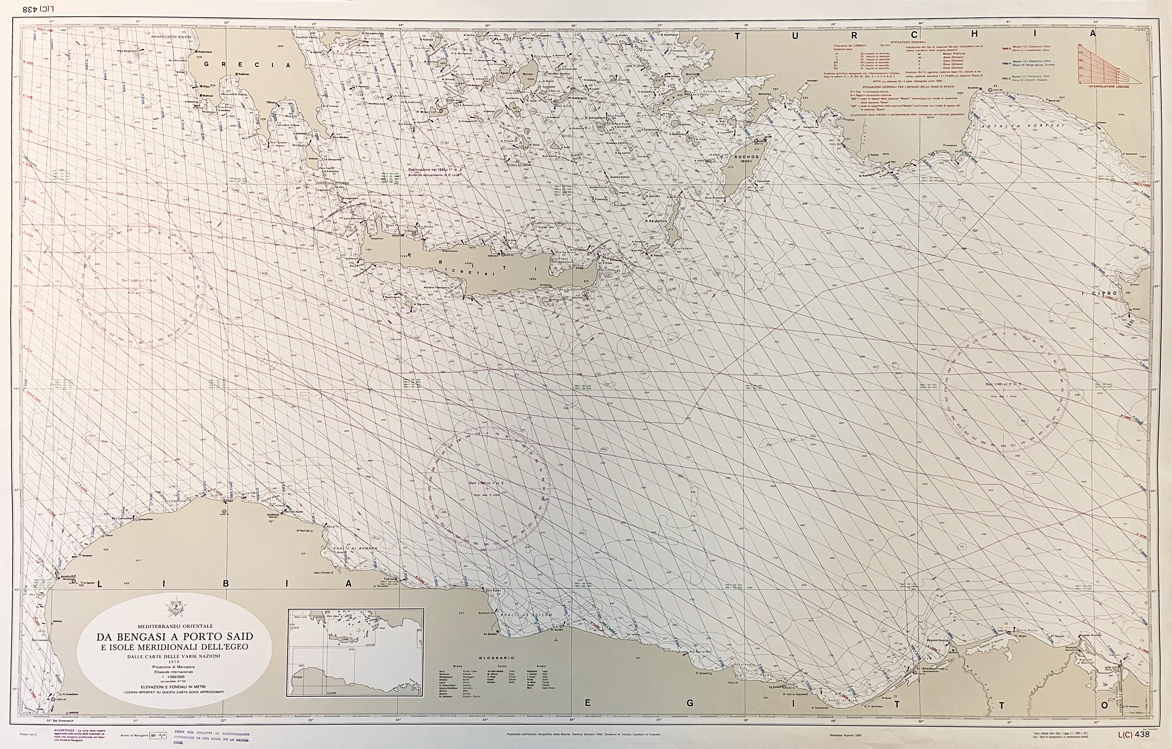Carta Nautica Da Bengasi a Porto Said e isole meridionali Egeo carta Loran