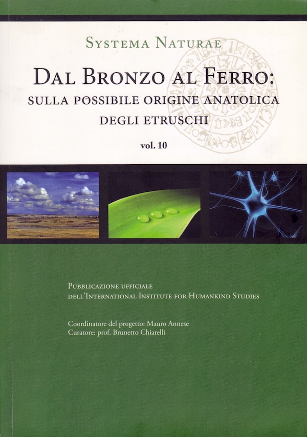 Il popolamento etrusco in Italia potrebbe avere origine anatolica? Questo nuovo volume di Systema Naturae, Dal bronzo al ferro propone nuove teorie sulla possibile origine anatolica degli Etruschi. È infatti noto che nella fase di transizione dall’età del Bronzo e l’età del Ferro, intorno a 1000 anni a.C., popolazioni diverse dell’Oriente si muovevano nel Mediterraneo alla ricerca di minerali che potessero sostituire con maggiore efficienza il Bronzo, per il quale fra l’altro esistevano difficoltà di reperimento dei due minerali di base: rame e stagno. L’idea di quest’origine anatolica degli Etruschi covava da tempo nella mente degli antropologi fiorentini e pisani. Negli anni 1991-93, l’allora International Institute for the study of Man aveva promosso un interessante serie di workshops a Firenze e Cortona dal titolo The Etruscan: skeletal biology and their way of life con l’intervento di studiosi italiani e americani, un progetto coordinato dal prof. Brunetto Chiarelli. Fra i partecipanti: G.J. Armelagos, Dip. Antropologia della Florida University, R.S. Corruccini, Dip. di Antropologia della Sououthern Illinois University, L. Donati, dell’istituto di Archeologia dell’Università di Firenze, E. Feruglio e E. Pacciani, delle Soprintendenze Archeologiche di Perugia e Firenze ed altri studiosi italiani e stranieri. Nei primi anni del 2000, quest’idea ha interessato la Turkish Historical Society di Ankara che, nel Giugno 2007, ha organizzato un interessante congresso internazionale nella città di Bodrum, l’antica Alicarnasso, avviando una cooperazione su queste tematiche con i ricercatori turchi. Questo volume analizza i processi storici, i collegamenti geografici e il popolamento umano nell'età del ferro, le ipotesi di Erodoto e Dionisio di Alicarnasso sulle origini degli Etruschi, la religione, la lingua e la cultura scritta di questo popolo, le specie vegetali coltivate in Etruria, le tecniche di fusione del ferro e la posizione delle donne nella società, senza scordare il dibattito sullo stato attuale delle ricerche antropologiche e bio-antropologiche.