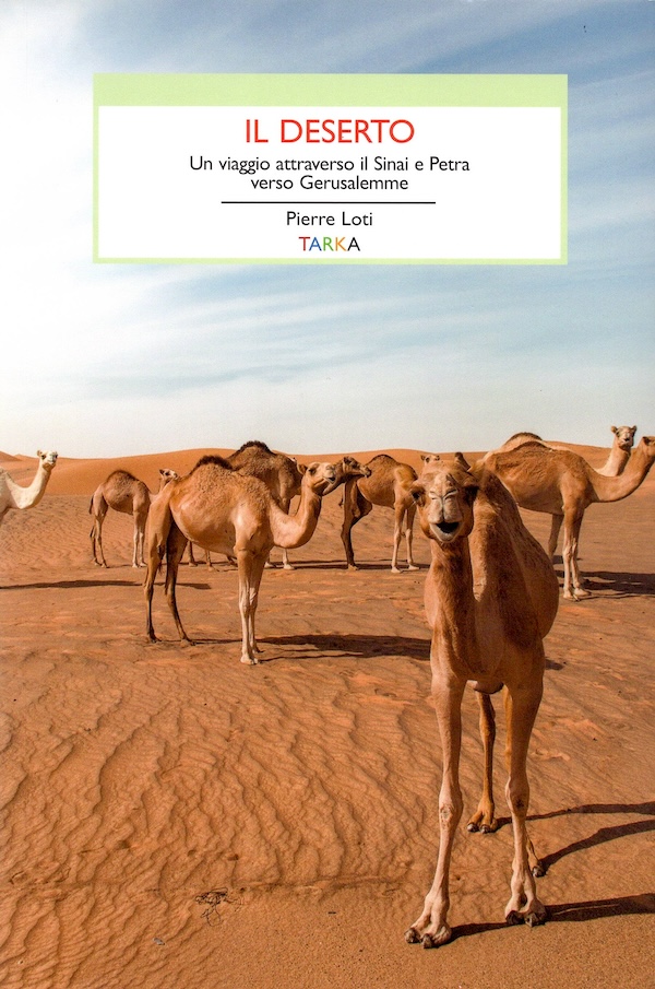 In maniera avvincente, il deserto diventa lo straordinario protagonista di avventure e realtà che Pierre Loti svela con impareggiabili colori “Ai pericoli del viaggio, non ci credo affatto. E la loro attrazione chimerica non è quella che mi conduce qui. Ma per tentare di vedere, ancora sotto l’invasione degli uomini e delle cose di questo secolo senza fede, la santa Gerusalemme, ho voluto venirci lungo le vecchie strade abbandonate e prepararmi lo spirito durante lunghi raccoglimenti nella solitudine. Me n’erano state offerte parecchie di quelle strade di sabbia. La prima, la più facile e la più corta, è quella denominata del Piccolo Deserto, attraverso El Arich e i confini del golfo egiziano: già banalizzata, questa, e seguita ogni anno da molti inglesi e americani oziosi, confortevole e sotto la protezione delle speciali agenzie. Un’altra, quindi, meno frequentata, attraverso il Sinai e Nackel. Infine, la più lunga di tutte, attraverso il Sinai, Akabah e il deserto di Petra. Ho scelto questa, perché le guide mi consigliavano di non prenderla. Meno facile da sempre quest’ultima, in Egitto è considerata impraticabile in questo momento, dopo la ribellione delle tribù dell’Idumea. E sono dieci anni che nessun europeo ha tentato di percorrerla.”