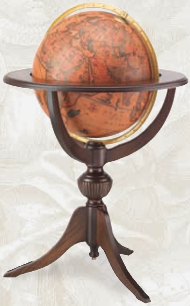 Globo geografico di 50 centimetri di diametro con base in legno. Il mappamondo si contraddistingue per un design classico e tradizionale che incontra le esigenze di chi desidera da un mappamondo anche l'eleganza di un importante oggetto d'arredo. Dimensione cm.72x72 h 118 cm.