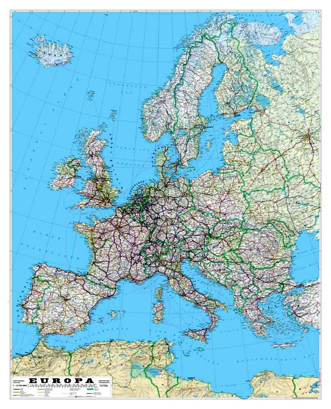 carta politica stradale murale scala 1:3.750.000 cm.99x131