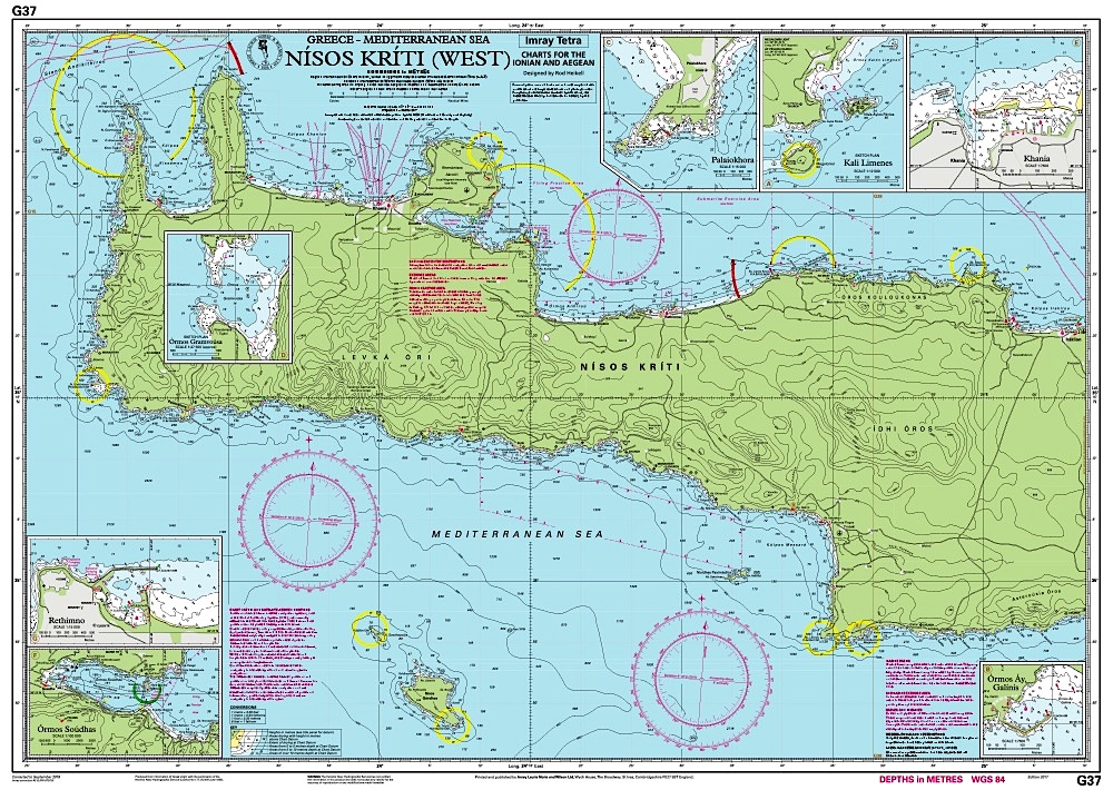 in plastica scala 1:190.000 Plans included: Kali Limenes - Órmos Áy. Galínis - Palaiokhora - Órmos Gramvoúsa - Khanía - Órmos Soúdhas - Rethimno.
