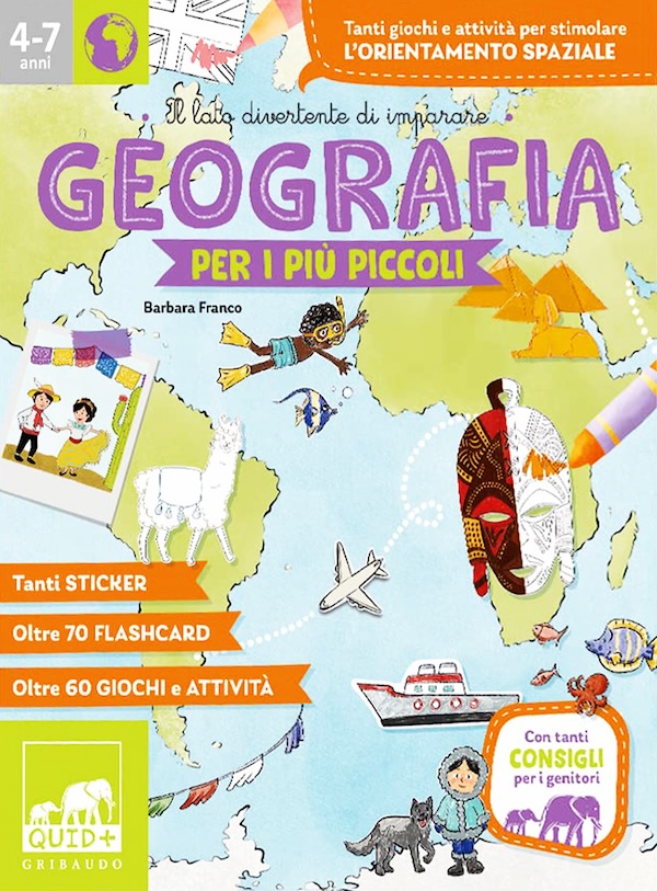 Trasmettere la passione e la curiosità per la geografia significa permettere al nostro piccolo di costruire quel bagaglio culturale indispensabile per comprendere più profondamente il mondo che ci circonda. Grazie a questo quaderno di attività partiremo insieme al nostro piccolo per un viaggio attorno al mondo alla scoperta di culture e luoghi da visitare, stimolando e consolidando alcuni prerequisiti fondamentali per l’orientamento spaziale: sopra-sotto, destra-sinistra, la capacità di lettura e comprensione di una mappa, la lateralizzazione… L’obiettivo è quello di suscitare curiosità e motivazione per la ricerca di nuove conoscenze. Le attività proposte, inoltre, sono un ottimo punto di partenza per ampliare ogni giorno le informazioni. Da una frase alla TV, da un’immagine su un libro o dalle conversazioni con un adulto: il nostro piccolo capta quotidianamente migliaia di informazioni. Dandogli gli elementi di base per collocarle più precisamente lo aiutiamo a sviluppare cultura, capacità di ragionamento, curiosità e consapevolezza, oltre all’orientamento spaziale! Età di lettura: 3-6 anni.