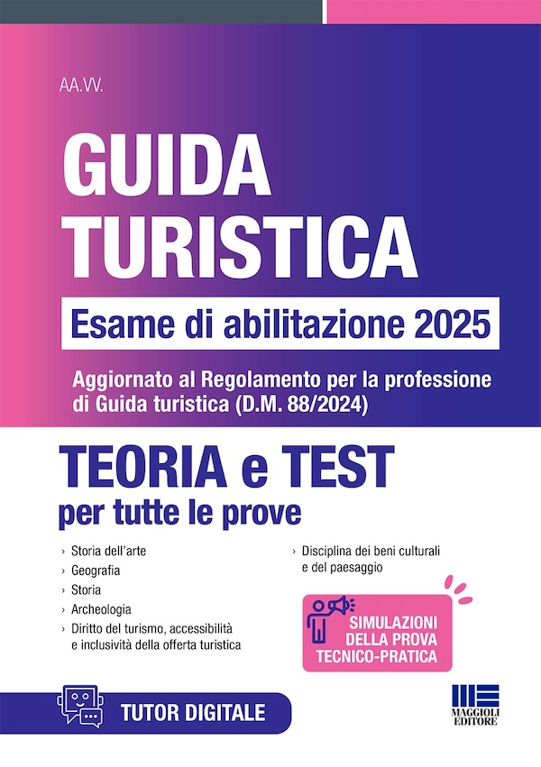 Il Manuale è un ottimo strumento per la preparazione alle prove del nuovo esame per il conseguimento del titolo abilitativo all’esercizio della professione, alla luce della Nuova disciplina della professione di guida turistica (Decreto del Ministero del Turismo del 26 giugno 2024, n. 88). Il Manuale offre, infatti, una trattazione completa e aggiornata su tutte le materie richieste dal bando: Storia dell’arte; Geografia; Storia; Archeologia; Diritto del turismo, accessibilità e inclusività della offerta turistica; Disciplina dei beni culturali e del paesaggio. L’ultima parte del libro sarà dedicata alla prova tecnico-pratica con alcuni suggerimenti per la preparazione del candidato e una selezione di simulazioni di visita guidata. Nella sezione online collegata al volume sono disponibili: simulatore online per ripassare gli argomenti di studio e esercitarsi in vista della prova scritta, Tutor digitale per capire meglio gli argomenti, ripetere alcuni concetti, fare mappe e schemi, organizzare un piano studio e eseguire dei quiz sulle materie.