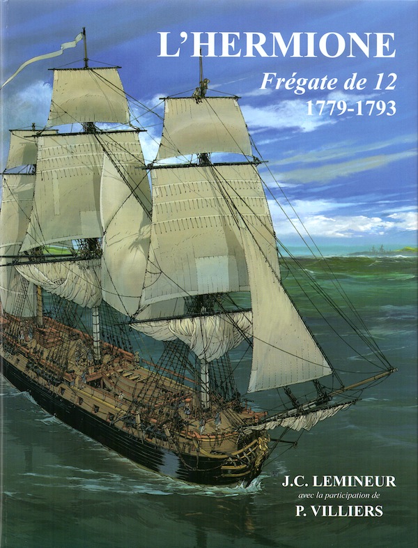 Un primo capitolo è dedicato alle qualità nautiche che devono avere i vascelli da guerra. Queste si rivelano particolarmente scadenti sui bastimenti costruiti nel corso del XVII secolo e nella prima parte del XVIII secolo a causa di concezioni superate. Le nuove concezioni adottate dalla fine di quest’epoca, sono poi descritte insieme al miglioramento delle prestazioni e del comportamento in mare, di cui solo il risultato. Un secondo capitolo è l’oggetto di un minuzioso studio dei documenti che si riferiscono all’architettura e alle caratteristiche delle fregate gemelle, studio che permette di definire in modo plausibile, i vari aspetti poco conosciuti dell’Hermione. Trentaquattro tavole, la maggior parte commentate, ne danno un’immagine dettagliata. Lista delle tavole a scala 1:48: 1-Vista laterale schematica. 2-Piano schematico. 3-Verticale delle forme. 4-Costruzione della poppa. 5-Costruzione dell’arcaccia. 6-Costruzione degli scalmi di cubia I. 7-Costruzione degli scalmi di cubia II. 8-Profilo delle coste AR da 1 a 6. 9-Profilo delle coste AR da 7 a 12. 10-Profilo delle costa AR da 13 a 19. 11-Profilo delle coste AR da 20 a 29. 12-Profilo della costa maestra e costa AV da 1 a 5. 13-Profilo delle coste AV da 6 a 11. 14-Profilo delle coste AV da 12 a 18. 15-Profilo delle coste AV da 19 a 24. 16-Vista laterale imboscata. 17-Piano del fondo della stiva. 18-Piano del falso ponte. 19-Carpenteria del ponte di batteria e casseri. 20-Ponte di batteria dotato dei suoi apparati. 21-Casseri dotati dei loro apparati. 22-Sezione longitudinale. 23-Sezioni trasversali. 24-Vista Parée. 25-Decoro di poppa e prua. 26-Artiglieria e apparati. 27-Elementi di accastellamento. 28-Piano degli alberi e dei pennoni. 29-Alberatura e attrezzatura di maestra. 30-Guarnitura dell’alberatura. 31-Alberatura e attrezzatura di trinchetto. 32-Alberatura e attrezzatura di mezzana. 33-Ritorno delle manovre (1/72). 34-L’Hermione invelata (1/72).