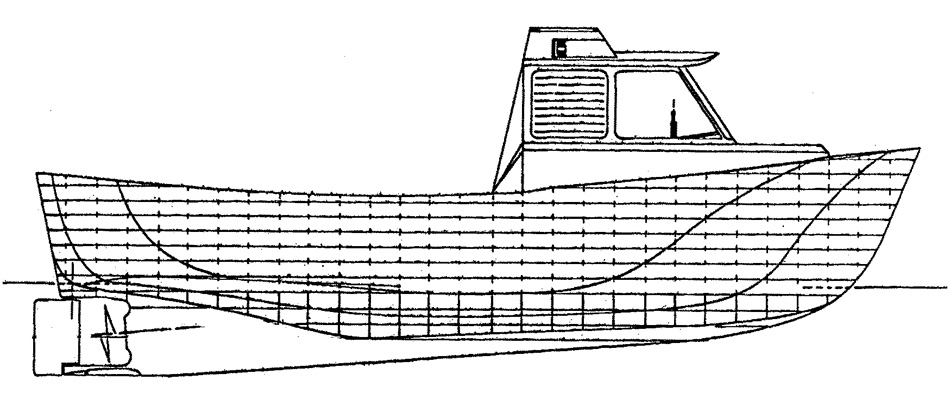 Piccolo cabinato da diporto e pesca sportiva, con un motore di 25 HP in grado di imprimere una velocità massima di 16 nodi. Un progetto di Sergio Spina datato 10.2.1987 con: piano di costruzione con tracciato, vista di fianco e semivista dall’alto.