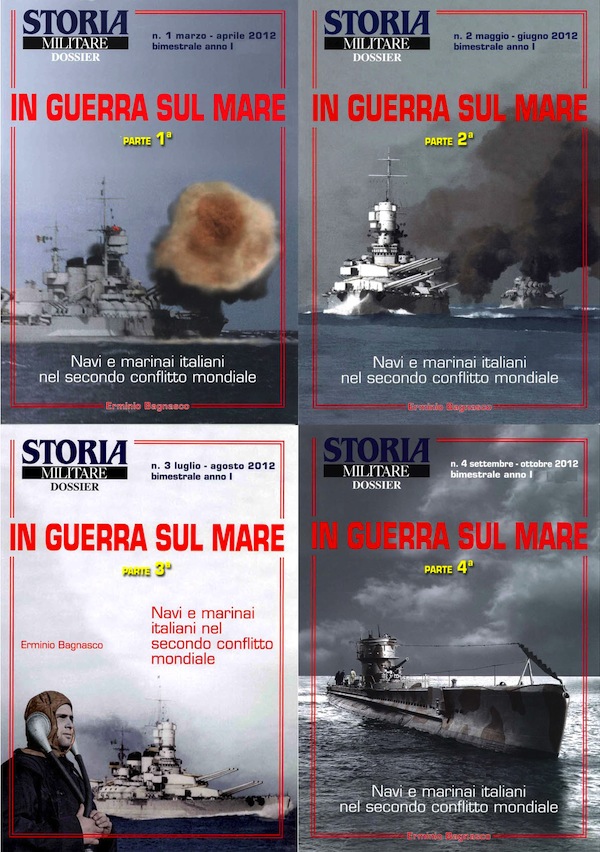 In guerra sul mare contiene un’enorme quantità di fotografie e fa particolarmente affidamento sull’immagine fotografica per commentare gli avvenimenti che coinvolsero le navi e i marinai italiani tra il 1940 e il 1945, pur fornendo anche ampi testi che riassumono le vicende della Regia Marina dal 1861 alla fine degli anni Trenta e l’andamento generale del conflitto. Di particolare pregio è la riproposizione dell’organizzazione e consistenza del naviglio al 10 giugno 1940, all’inizio del 1942 e alla data dell’armistizio dell’8 settembre 1943. Merita poi una particolare menzione la trattazione degli aspetti navali del Trattato di pace del 1947 i cui adempimenti rappresentarono l’ultimo atto di quella guerra e non sono ancora oggi a tutti noti, specie a certi critici da strapazzo. Si tratta di un lavoro di ricerca durato molti anni e svolto in tutte le direzioni, dagli archivi pubblici italiani e stranieri alle raccolte private, da cui proviene la maggior parte delle immagini. La raccolta di foto di navi e di marini italiani nella seconda guerra mondiale qui presentata è senz’altro parte pregevole dell’opera poichè ogni immagine è attentamente studiata e commentata, ne è stata controllata la correttezza dell’indicazione e, infine, per ognuna è stata indicata una data certa di esecuzione ( in mancanza della quale è indicato un periodo in cui si stima possa essere stata scattata). Questo è senz’altro uno dei meriti di questa opera appassionata ed affascinante, perché eravamo abituati ad immagini prive o con poche indicazioni, quando non recanti indicazioni errate. Vengono doviziosamente trattati, direi privilegiati, gli aspetti più “veri” della nostra guerra sul mare: poco spazio è dedicato ai pochi e inconcludenti scontri a fuoco tra navi maggiori e minori mentre viene sviluppata ed evidenziata la lunga e giornaliera odissea dei convogli per i fronti oltremare, così come i vari aspetti della gravosa attività dei sommergibili, delle unità minori, del dragaggio, della vigilanza costiera, del raddobbo del naviglio, ecc. L’obiettività storica dice infatti che le operazioni navali nel Mediterraneo durante il secondo conflitto mondiale hanno avuto il loro punto di forza non tanto nell’azione delle grandi navi, bensì in quella delle unità medie e leggere impegnate nella difesa e nell’attacco al traffico dei rifornimenti.
