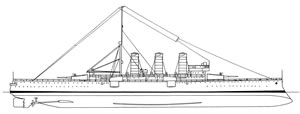 Incrociatore corazzato costruito dal Cantiere Orlando di Livorno. Varato il 15.9.1907, partecipò attivamente alla I Guerra Mondiale e dal 1921 venne classificato "Corazzata costiera" ed adibito a Nave Scuola. È stato radiato nel 1937. Il gemello Amalfi, varato il 5.5.1908 dal Cantiere Odero di Genova, ebbe una vita molto breve: entrato in servizio l'1.9.1909, venne affondato da un sommergibile austriaco il 7.1.1915 nel corso di una missione nelle acque dell'Alto Adriatico. Due tavole con il piano di costruzione, la vista di fianco, il ponte di coperta e numerosi particolari delle soprastrutture.