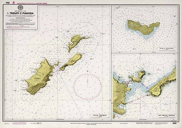 Iin carta scala 1:15.000 con Isola Pianosa e ancoraggio delle Isole Tremiti scala 1:5.000