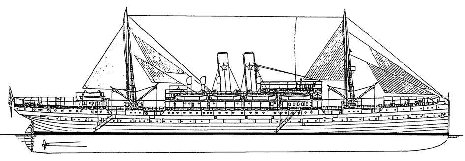 Varata dal Cantiere N. Odero alla Foce il 23.6.1905 per la Compagnia "La Veloce", questa splendida nave, dotata nel progetto di velatura ausiliaria, venne adibita al trasporto di passeggeri e merci sulla linea sudamericana insieme alle quasi gemelle Brasile e Argentina. Trasferita al Lloyd Triestino nel 1932, venne usata per trasportare le truppe in A.O. nel 1936 ed in Libia nel successivo conflitto, riuscendo a superare tutte le insidie nemiche. Venne affondata nel golfo di Arsia il 6.7.1944 da bombe di aerei. Tre perfette tavole, datate 5.6.1904 e 1905, con il piano di costruzione, la vista di fianco, il ponte di comando, i casseri, il ponte di coperta, batteria, corridoio e n.4 sezioni trasversali.