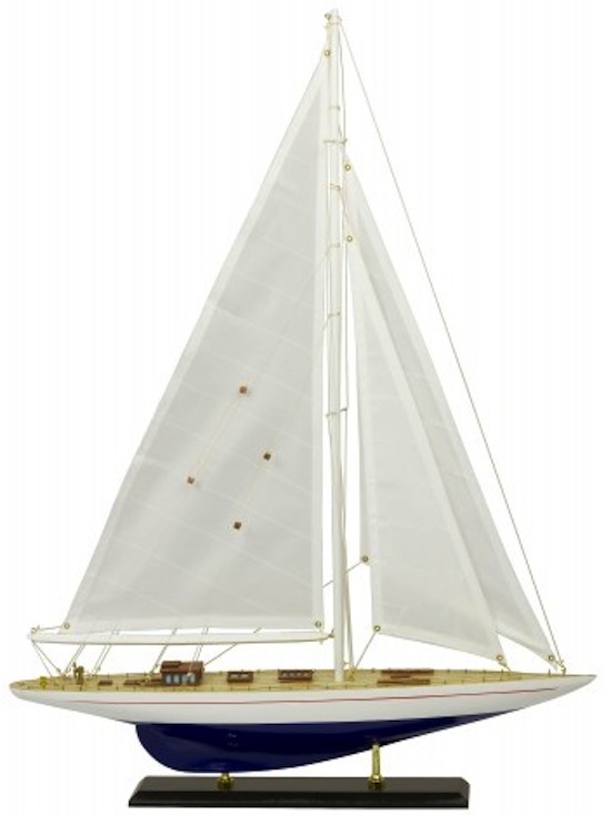 With its sleek, streamlined hull and crisp sails, this model looks like it would give any competitor a run for their money. Beautifully made with a smooth, lined, wooden deck detailed deckhouses and brass deck fittings. Painted to a high standard in contrasting blue and white gloss. About Pond Yachts – Precision-modelled in the style of Victorian pond yachts, this display yacht is nothing short of magnificent. It has a hollow hull, constructed entirely of wood, whilst on deck there are delightful details such as adjustable rigging blocks, sewn cotton sails, raised gunwales and brass fittings.