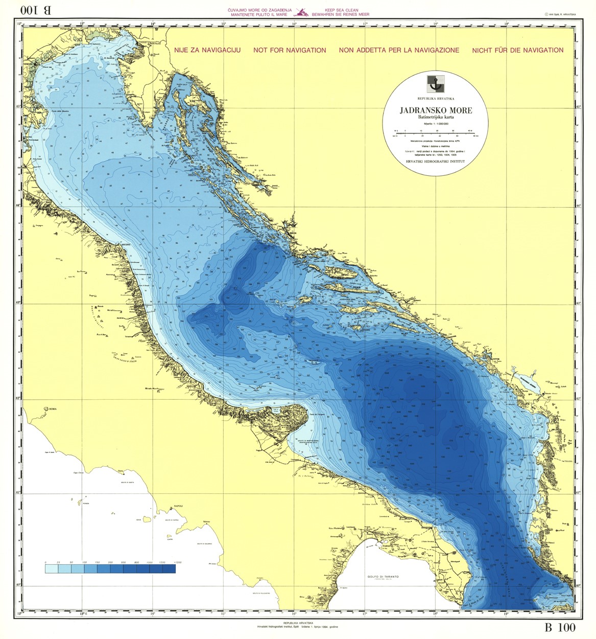 Carta Nautica Jadransko more, batimetrijska karta