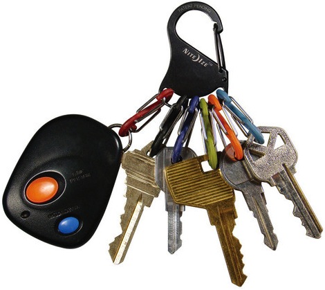 The Nite Ize KeyRack is as functional as it is compact, versatile as it is simple, and useful as it is (for lack of a better word) cool-looking. Its high quality stainless steel carabiner clip has a secure gate closure on one end, allowing you to clip your keys to an existing key ring, belt loop, purse strap, zipper pull—anything with a loop or D-ring. The other end holds six different-colored plastic S-Biners, perfectly sized to hold 6 separate keys. Identify your keys by color, and attach and release them individually from the Key Rack with ease. No more fiddling with split rings or fumbling to find the key you need—the Key Rack is perfect for quick and easy sharing of keys with family members, leaving a key for a valet or babysitter, and taking a single key when you're out on a run or ride.