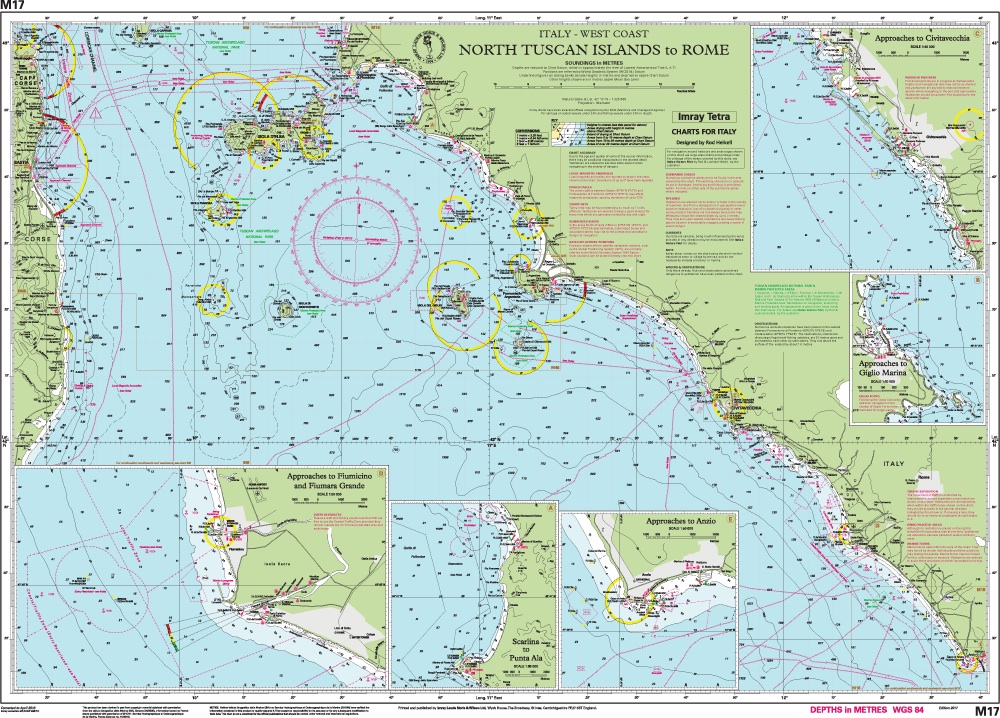 in plastica scala 1:325.000 PPlans included: Scarlino to Punta Ala scale 1:85.000; Approaches to Giglio Marina scale 1:10.000; Approaches to Civitavecchia scale 1:40.000; Approaches to Fiumicino and Fiumara Grande scale 1:50.000; Approaches to Anzio scale 1:50.000.