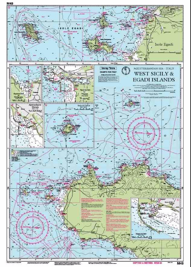 In plastica scala 1:275.000 Plans included: Isola di Ustica (1:100.000) Isole Egadi (1:100.000) Approaches to Trapani (1:20.000) Approaches to Favignana (1:10.000) Approaches to Marsala (1:15.000) Mazara del Vallo (1:10.000)