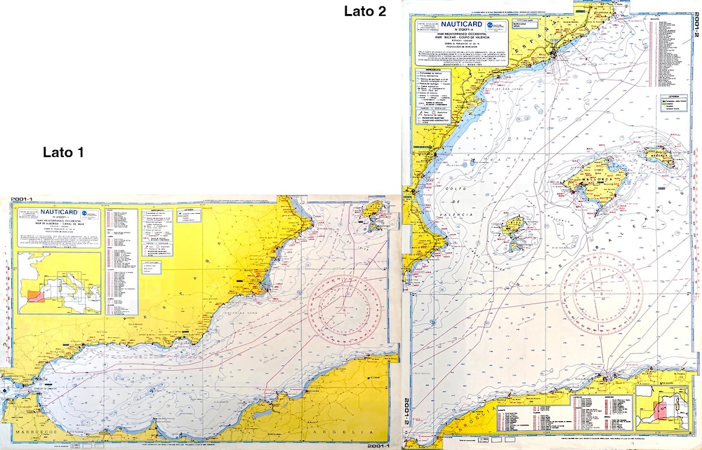 in materiale plastico scala 1:1.000.000 stampata su entrambi i lati Lato 1: Mar Mediterraneo Occidental - Mar de Alboran - Canal de Ibiza Lato 2: Mar Mediterraneo Occidental - Mar Balear - Golfo de Valencia