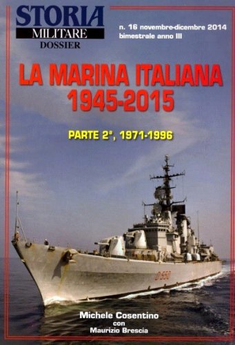 I tre dossier "La Marina Militare Italiana 1945-2015" coprono un lungo periodo temporale-ben settant’anni! - nel corso dei quali la Marina Militare ha dovuto affrontare sfide e situazioni diversificate, e spesso di difficile soluzione: dalla ricostruzione postbellica alla "legge navale" del 1975, dai gravosi impegni internazionali successivi alla conclusione della Guerra Fredda all'attuale momento in crisi, anche economica. In questo ambito il dossier si prefigge di poter contribuire alla conoscenza non soltanto iconografica - ma anche tecnica e operativa, grazie ad esaustive didascalie che descrivono ciascuna fotografia - di un elemento fondamentale della difesa del nostro paese, negli ultimi sette decenni della sua storia e della sua presenza sullo scacchiere internazionale.