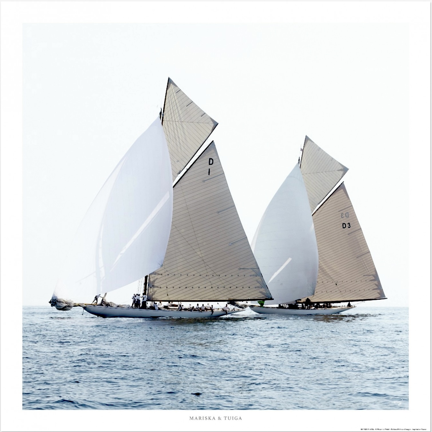 Mariska et Tuiga, deux voiliers de 15 mètres JI de légende, régatent en Méditerranée pendant Les Voiles de Saint Tropez. Les Voiles de Saint-Tropez sont plusieurs régates qui ont lieu une fois par an dans le golfe de Saint-Tropez pendant une semaine fin Septembre.