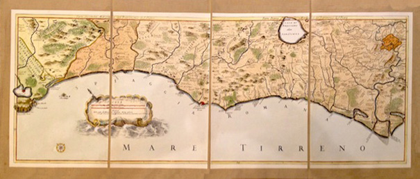 carta geografica antica colorata a mano su tela cm.119X49