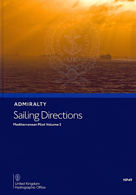 Admiralty Sailing Directions. Republished at approximately 2 yearly intervals. Coasts of Libya, Egypt, Israel, Lebanon and Syria, S coasts of Greek Islands from Kriti to Rodos and Turkey with the island of Cyprus.