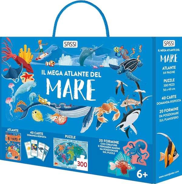 La Terra è in gran parte ricoperta dall’acqua: oceani, laghi e fiumi costituiscono il 71% della superficie terrestre, il che spiega perché, se si guarda il nostro Pianeta dallo Spazio, lo si vede come una grande palla blu. Quando si sono formati gli oceani e i mari? Qual è la differenza tra mare e oceano? Quali organismi vivono nell’ecosistema marino? Scopri molte nozioni interessanti leggendo l’atlante e sfidando te stesso rispondendo alle domande delle carte e costruendo il puzzle. Una scatola dai dettagli iridescenti contenente 40 carte domanda-risposta sul mare, un puzzle da 500 pezzi, 20 formine con creature e fenomeni marini da posizionare sul puzzle e un atlante di 64 pagine ricco di interessanti nozioni sul mare. Età di lettura: da 6 anni.