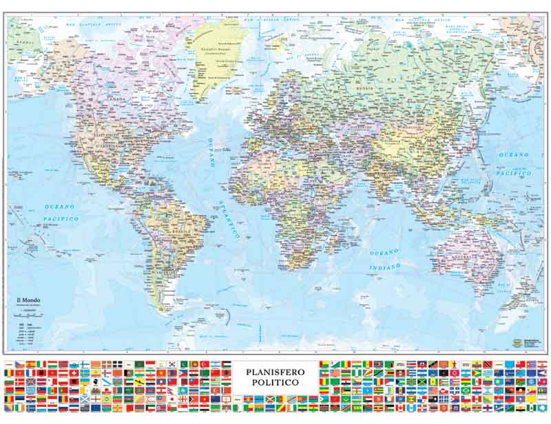 politico murale plastificato con aste scala 1:43.000.000 cm.91X67