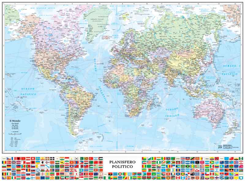 politico murale plastificato con aste scala 1:63.000.000 cm.63X47