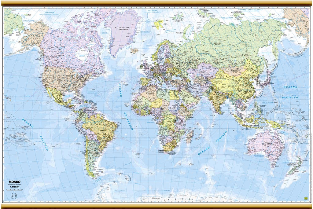 politico murale plastificato con aste di legno scala 1:30.000.000 cm 131X85