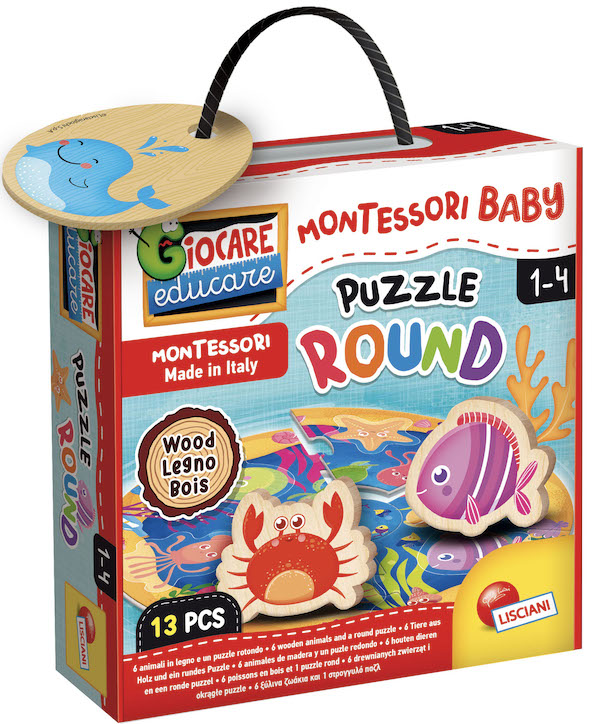 Un suggestivo puzzle circolare del mare per esercitare tatto e logica. 6 animali in legno di alta qualità Adatto ai bambini al di sotto dei 36 mesi. Conforme alle più recenti normative sulla sicurezza.