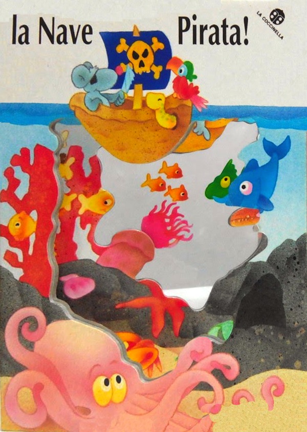 Le ampie forature sono associate a un foglio in PVC trasparente stampato: in questo modo il foro non è più solo un'apertura, un passaggio da una pagina all'altra, ma una vera e propria finestra attraverso la quale si può curiosare e vedere. Si scoprono così dei fantasiosi fondali marini. La legatura a fisarmonica fa sì che più "finestre" si sovrappongano, mostrando immagini ricche di particolari che cambiano voltando le pagine. Al racconto per immagini si accompagna un allegro testo in filastrocca, adatto anche ai più piccini.
