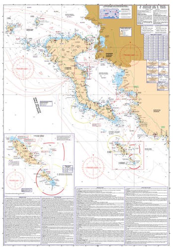 in plastica scala 1:149.000 From Nisos Othonoi up to Nisos Antipaxoi. Includes: Coasts of NW mainland; Islands of Kerkyra, Paxoi, Antipaxoi. Larger scale charts included in the back side: North Kérkyra strait; Approaches and harbour of Kérkyra; Bay and marina of Gouviá (Kérkyra); Igoumenítsa channel and harbour; Islands of Paxoí and Antípaxoi; Gáios harbour (Paxoí); Bays of Párga and Váltos.