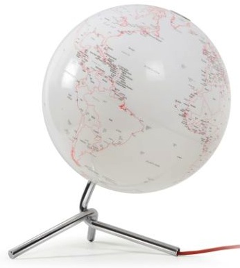 sfera lucida bianca da 30 cm. base cromata, illuminato