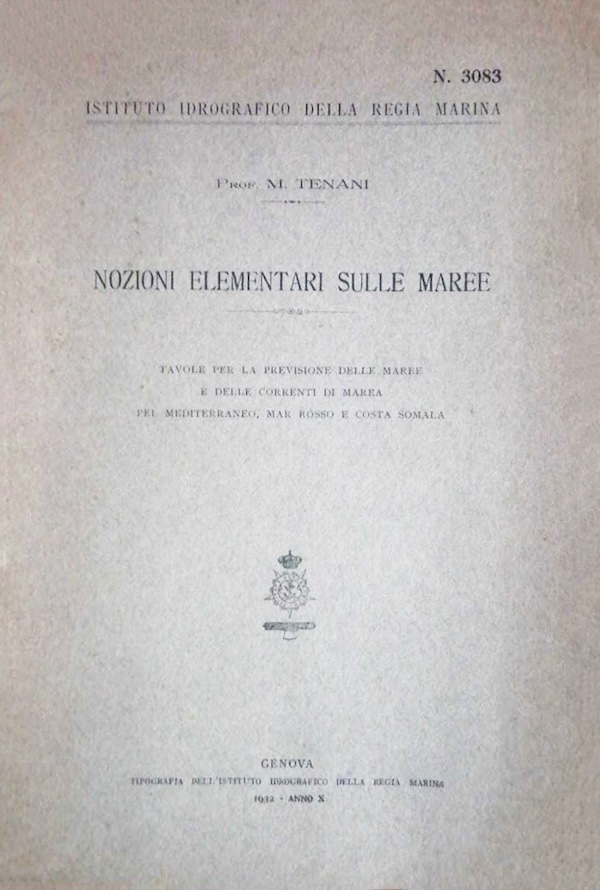 tavole per la previsione delle maree e delle correnti di marea pel Mediterraneo, Mar Rosso e Costa Somala