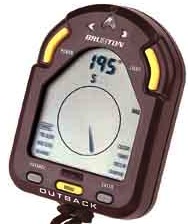 An electronic compass that stores bearings, times and courses. Accurate to 2° (1° resolution); unlike traditional compasses that must be held level, the Outback can be tilted up to 15° without compromising accuracy. Error flag warns when accuracy is being affected by magnetic interference. Utilizing U.S. military technology, this compass features multi-leg, trail blazing, bearing mode, declination correction, night navigation, and a built-in timer and clock. Displays in digits and cardinal points.