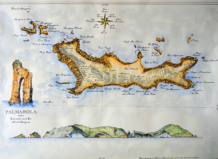 Litografia bianco e nero acquerellata a mano cm.70x50 scala 1:6.250
