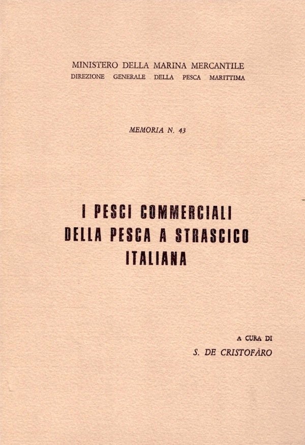 Sono rappresentati con disegni in bianco e nero una sessantina di Pesci e crostacei che vengono regolarmente pescati nei nostri mari dai pescatori con le strascicanti. Molte delle specie, mostrate e descritte benissimo, sono vicine all’esaurimento biologico e molti fondali di platea sono diventati pressoché sterili. Nel sacco delle reti a strascico si ritrovano moltissimi altri animali, ma quelli presi in considerazione nel testo, a cura di Silvio De Cristofaro sono esclusivamente gli animali commerciali, come quasi tutti i batipelagici e i batidermersali. Sono oltre 500 le specie edibili su oltre settemila specie complessive di pesci, molluschi e crostacei ma solo una sessantina hanno un valore commerciale anche se, di fatto, il consumo si concentra su 20 specie. L’iconografia e la classificazione degli animali descritti usata, è stata ripresa da diverse pubblicazioni della Fao e dall’opera del grande biologo marino Giorgio Bini.