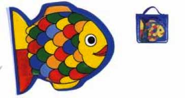 La particolarità di questi libri in plastica resistenti all’acqua e lavabili da bagno non è soltanto la forma, ma l’effetto lucido e brillante della copertina: all’interno del pesce colorato e della nave scintillante si nascondono semplici motivi colorati sparsi sulla spiaggia e nel mare. Un altro dettaglio interessante è la borsa in PVC decorata con onde e bolle d’aria.