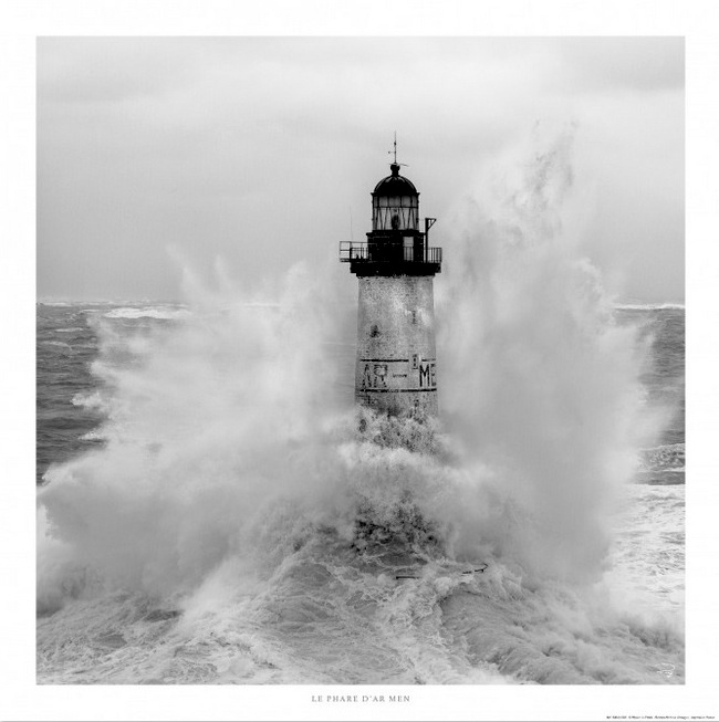 Le phare d'Ar-Men au large de l'île de Sein dans le Finistère photographié en février 2014 pendant le passage de la tempête Petra. Ses derniers gardiens ont quitté le phare appelé "l'enfer des enfers" en 1990.