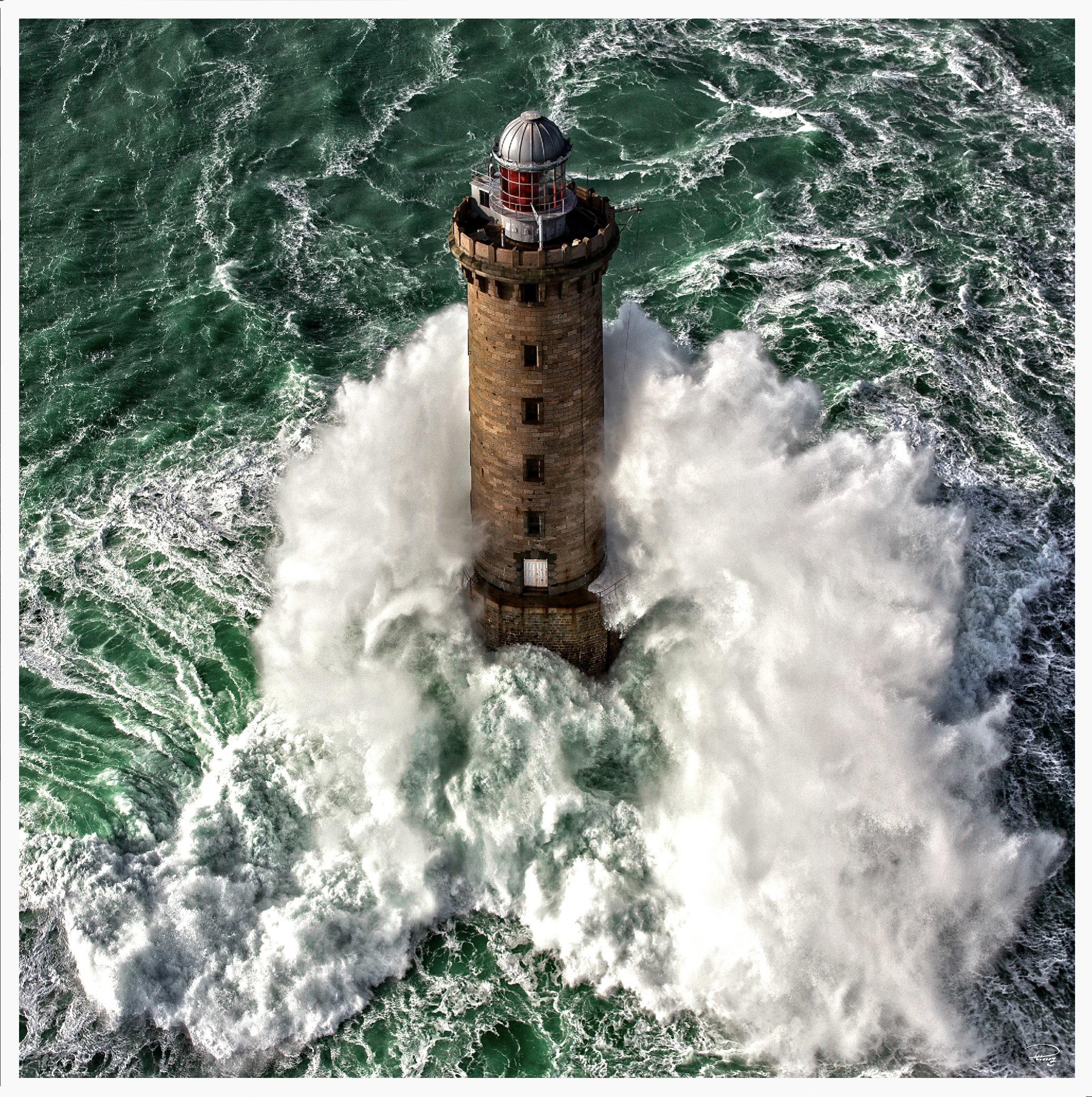 A la pointe du Finistère, entre les îles de Molène et de Ouessant, voici le phare de Kéréon. C’est le dernier phare en mer, le dernier « enfer » à avoir été automatisé, en Janvier 2004. En plein passage du Fromveur, il est attaqué par les vagues et courants qui viennent de l’océan.