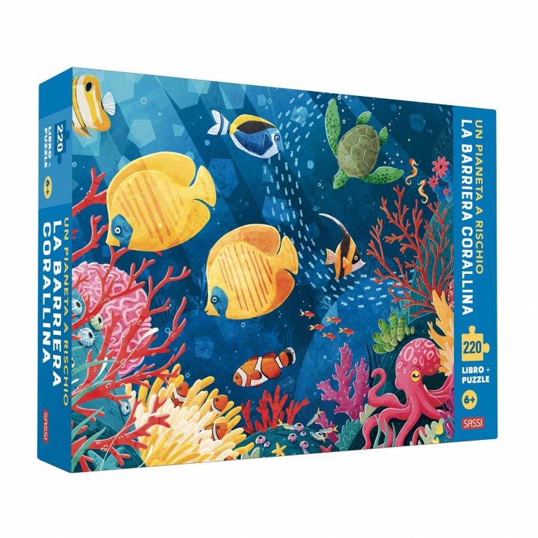 Un puzzle di 220 pezzi e un libro di 32 pagine per scoprire tutti i segreti della barriera corallina, che aiuterà il bambino a capire quanto questo ecosistema sia in pericolo e l’importanza della sua sopravvivenza per salvaguardare molte specie di esseri viventi acquatici. Le barriere coralline sono degli ecosistemi incredibili e spettacolari, che si possono trovare in luoghi dove le acque sono limpide, ben illuminate e con una temperatura compresa tra i 20 e 30 gradi. Sono degli organismi viventi che impiegano migliaia di anni a crescere, che riescono a raggiungere altezze e lunghezze davvero inimmaginabili e che ospitano una fauna davvero variegata. A causa delle minacce naturali, ma soprattutto per colpa delle azioni umane sconsiderate, questi habitat estremamente delicati rischiano di scomparire. Età dai 6 anni.