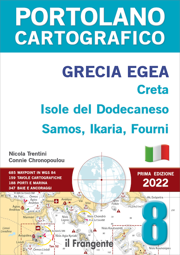Questo è il secondo dei tre volumi che descrivono la Grecia del Mare Egeo, così suddivisi: 1. Peloponneso orientale, Golfo di Saronico e Cicladi 2. Creta, isole del Dodecaneso e isole del Nord Egeo 3. Eubea, Sporadi, Grecia settentrionale e Isole del Nord Egeo. La principale caratteristica di questo portolano sono le 159 tavole cartografiche che illustrano piani di porti, approdi e ancoraggi della Grecia Egea, suddivisa in 4 macrozone: le coste di Creta; le isole del Dodecaneso a partire dall’isola di Kàsos a sud fino ad Agathonìsi a nord; il gruppo meridionale delle isole del Nord Egeo (Ikarìa, Foùrni e Sàmos). L’introduzione comprende informazioni generali sull’area di navigazione (regolamenti, servizi per il diporto, formalità d’ingresso, aree marine protette, ecc.), una tavola con distanze e rotte principali, elenco della cartografia tradizionale e digitale e informazioni meteorologiche generali. Nelle guide rapide di consultazione all’inizio di ogni capitolo sono elencati i principali porti e marina, con i relativi servizi (erogazione di acqua e corrente, carburante, assistenza tecnica, ecc.) e le baie idonee all’ancoraggio, con le relative caratteristiche utili al navigante (protezione, natura del fondo, profondità, possibilità di approdo con il tender, ecc.). Basta dunque un rapido sguardo per essere in grado di scegliere il porto o la baia a seconda della propria barca e delle condizioni meteo. I numerosi piani di porti e baie sono corredati da una ricca gamma di pittogrammi che ne facilitano l’immediata consultazione. Brevi testi completano le informazioni di pilotaggio indispensabili per una navigazione sicura. In tutti i piani è presente un’icona che indica i venti di traversia. I numeri del portolano: 685 waypoint in WGS 84; 159 tavole cartografiche; 188 porti e approdi; 347 baie e ancoraggi.