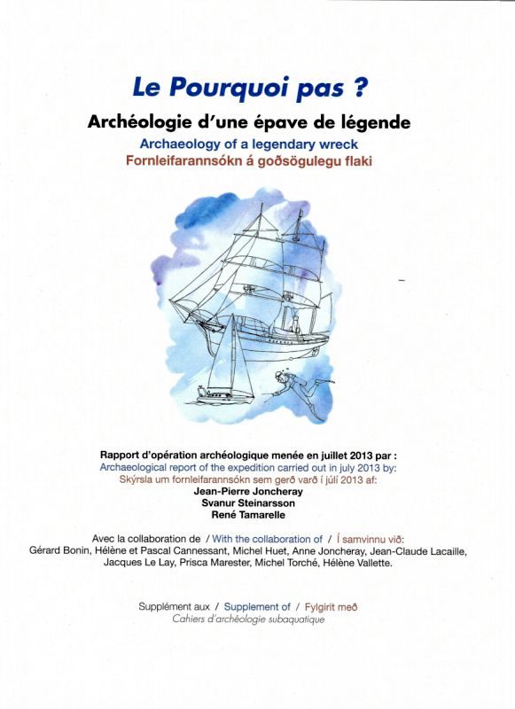 Rapport d'opération archéologique ménée en juillet 2013 par : Jean-Pierre Joncheray, Svanur Steinarson, René Tamarelle Les auteurs - p. 5 Authors Höfunda; Introduction - p. 7 Introduction lnngangur; Une question d'orthographe ! - p. 9 A question of spelling ! Spurning um stafsetningu !; Remerciements - p. 11 Thanks to Pakkir; Corsaires d' Ango - p. 17 Corsairs of Ango Corsaires d’Ango; Document de chantier - p. 19 Project statistics Wreck of Pourquoi pas ? Skjal um köfunarstaöinn Flak Pourquoi pas ?; Quelques lignes sur Jean-Baptiste Charcot - p. 25 A brief background on Jean-Baptiste Charcot Nokkrar linur um Jean-Baptiste Charcot; Le Pourquoi pas ? - p. 29 Le Pourquoi pas ? Pourquoi pas ?; 16 septembre 1936 : le naufrage - p. 43 September 16th, 1936 : the Shipwreck 16. september 1936 : strandiö; Précédentes expéditions sur l'épave - p. 71 Earlier expeditions on the wreck Fyrri köfunarleiöangrar; Localisation du gisement - p. 79 Location of the wreck Staösetning flaksins; Une description du site du naufrage - p. 89 A description of the wreck site Lysing à staönum par sem flakiö liggur; Description des vestiges de l'épave du Pourquoi pas ? - p. 99 Description of the remains of the wreck of Pourquoi pas ? Lysing à leifum flaksins af Pourquoi pas ?; En conclusion - p. 133 ln Conclusion Aö lokum.