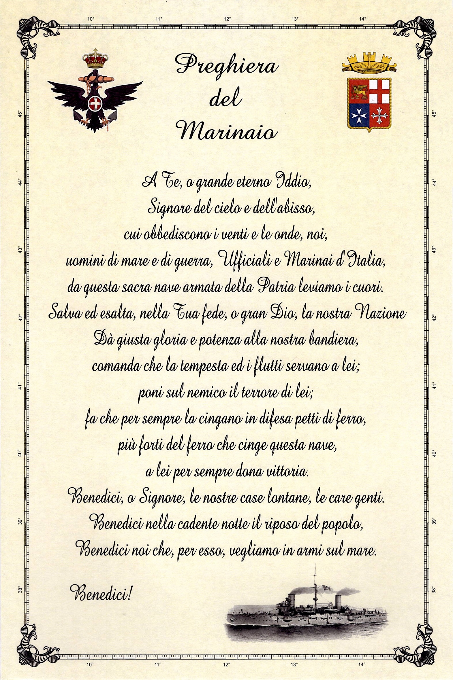 La stampa della preghiera viene accompagnata dall'emblema della Regia Marina oltre a quella della marina militare Italiana, il tutto contornato da una cornice millimetrata, tutt'ora presente nella cartografia nautica che indica le nostre latitudini e longitudini. Tutto ciò viene stampato su carta con effetto pergamena; inoltre questa stampa è accompagnata da una seconda stampa da posizionare sul retro della cornice ove viene menzionata la storia della preghiera, dal suo concepimento ai giorni d'oggi, con indicati i principali aneddoti ad essa legata. Questa stampa é parte di nuova collezione di stampe d'arredo direttamente ispirate alla nostra cultura marinara,che abbiamo realizzato dopo aver fatto un'approfondita ricerca su di essa e la sua storia.
