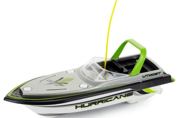 Doppia propulsione. Virate sinistra / destra Range di controllo: 6 metri. Colori: rosso, verde, giallo o blù. La confezione contiene: RC Mini Boat, Radiocomando, Battery Pack 2,4 V 120mAH, 2 motori, Manuale d'istruzioni. Non contiene: 4 ministilo per il radiocomando. Tempo operativo: 7 minuti. Tempo di ricarica: 12 minuti.