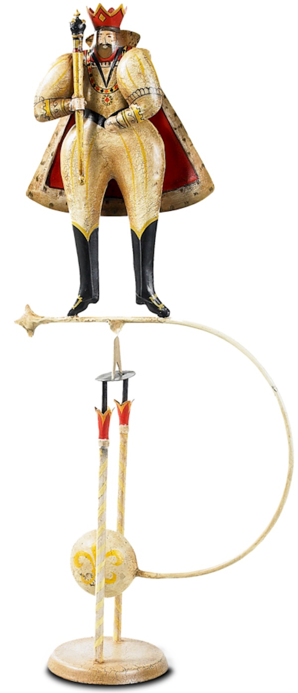 Nell’era vittoriana inventare giochi per attirare e divertire non solo i bambini era molto frequente. La forza di gravità e l’illusione ottica vennero molto utilizzate. I nostri oscillanti sono tratti da pezzi originali dell’epoca, trasmettono anche in questi tempi moderni lo stesso fascino. Realizzati in ferro battuto, dipinti e lucidati a mano.