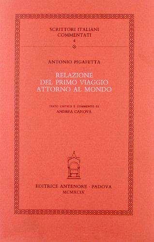 La prima circumnavigazione del globo, compiuta da una spedizione del Re di Spagna Carlo I, capitanata dal portoghese Ferdinando Magellano, e dopo la sua morte da Juan Sebastian Elcano, è una delle più grandi imprese della storia della navigazione, sebbene il prezzo pagato per portarla a termine sia stato assai oneroso: delle cinque navi salpate da Siviglia il 10 agosto 1519, solo due tornarono in Spagna, la Victoria, dopo oltre tre anni, e la Trinidad, dopo circa sei (quest’ultima peraltro senza compiere la circumnavigazione, avendo preferito, una volta giunti alle Molucche, ritornare in patria passando dal Pacifico anziché dall’Oceano Indiano); dei 234 uomini partiti, solo 36 sopravvissero all’estenuante viaggio. Tra di essi vi era Antonio Pigafetta, nobile vicentino, Cavaliere di Rodi, che si trovava in Spagna nel 1519 quando seppe della spedizione di Magellano, sulla quale riuscì ad imbarcarsi grazie alla raccomandazione del nunzio pontificio che lo stesso Pigafetta accompagnava: “(…) deliberai, con bona grazia de la maestà cesarea e del prefato signor mio, far esperienzia di me e andare a vedere quelle cose, che potessero dare alcuna satisfazione a me medesimo e potessero partorirme qualche nome appresso la posterità”. La “Relazione del primo viaggio intorno al mondo” è configurata come un lungo resoconto indirizzato “a l'illustrissimo ed eccellentissimo signor Filippo de Villers Lisleadam, inclito Gran Maistro di Rodi”. Un resoconto strutturato come un reportage socio-geografico, come peraltro ben si evince dal titolo originale “Notizie del Mondo nuovo con le figure dei paesi scoperti”. Un documento di un’importanza enorme nella storia delle scoperte e della navigazione, sebbene di certo non brilli per meriti prettamente letterari: lo stile è infatti molto didascalico e poco scorrevole. È inoltre molto ripetitivo, soprattutto nelle descrizioni dei vari popoli indigeni, per i quali l’autore usa spesso i medesimi termini, generando alla lunga una sorta di cantilena (“Questi populi vanno nudi come li altri”; “Vanno nudi come li altri”; “Questi popoli de Pulaoan vanno nudi come li altri”…). Vengono descritti molti usi locali, a volte curiosi, altre raccapriccianti, come quello che impone alle donne di Giava di bruciarsi vive alla morte del marito: “quando uno uomo de li principali de Giava Maggiore muore, se brucia lo suo corpo: la sua moglie più principale adornasi con ghirlande de fiori e fassi portare da tre o quattro uomini sovra uno scanno per tutta questa villa, e ridendo e confortando li suoi parenti, che piangono, dice: non piangete, perciò [che] me ne vado questa sera a cenare col mio marito e dormire seco in questa notte. Poi è portata al fuoco, dove se brucia lo suo marito, e lei voltandosi contro li suoi parenti e confortandoli una altra fiata, se getta nel fuoco, ove brusa lo suo marito. E se questo non facesse, non saria tenuta donna da bene, nè vera moglie del marito morto”. Non mancano i racconti “piccanti” delle abitudini sessuali degli indigeni, alcune per il vero parecchio bizzarre e singolari. Il documento è sicuramente interessante, anche se a volte un po’ faticoso da seguire per l’italiano vetusto, del ‘500, di Pigafetta.