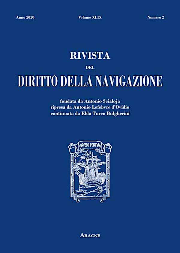 Elda Turco Bulgherini: I primi dieci anni dalla ripresa della pubblicazione della Rivista del Diritto della Navigazione (pag. 33-35); Alfredo Antonini: La responsabilità nell’esercizio degli sport nautici (pag. 641-676); Giorgia M. Boi: Le regole di security marittima e portuale e le esigenze di declinazioni uniformi.... (pag. 679-714); Monica Brignardello Utilizzo e potenzialità delle blockchains e degli smart contracts nel settore dello shipping: problematiche giuridiche (pag. 717-748); Guido Camarda: Le zone economiche esclusive nel Mediterraneo (pag. 751-790); ; Michele Maria Comenale Pinto: Il diritto della navigazione e dei trasporti nell’età digitale. Nihil novi sub soli et supra marem? (pag. 793-843); Umberto La Torre: Osservazioni in tema di VTS nella prospettiva evolutiva (pag. 847-867); ; Francesco Morandi: Il nuovo contratto di viaggio (pag. 869-904); Francesca Pellegrino: I voli suborbitali (pag. 907-930); Stefano Pollastrelli: Aspetti strutturali e funzionali del Reg. Ue n. 181/2011 in materia di trasporto di persone su strada (pag. 933-946); Maria Piera Rizzo: Soccorso in mare di persone in pericolo tra norme consolidate e problematiche ancora aperte (pag. 949-1008); Elisabetta Giovanna Rosafio: Osservazioni in materia di trasporto aereo e ambiente (pag. 1011-1034); Greta Tellarini: Gli effetti giuridici della politica di esternalizzazione dei controlli delle frontiere marittime e di contenimento dei flussi migratori adottata in Italia (pag. 1037-1079); Rita Tranquilli Leali: Infrastrutture portuali dedicate alla nautica da diporto: una difficile tutela (pag. 1083-1118); Leopoldo Tullio: Aspetti concreti della prova dell’accident nel trasporto aereo di persone (pag. 1121-1125); Giuseppe Vermiglio: Autorità marittima e Autorità di sistema portuale nel d. lgs. n. 169/2016 (pag. 1127-1180); Alessandra Xerri: I servizi tecnico nautici alla luce della riforma portuale (pag. 1183-1202); Alessandro Zampone: La giurisdizione nel trasporto aereo: antiche e nuove questioni (pag. 1205-1237); Stefano Zunarelli: La (contro)riforma del regime dell’autoproduzione delle operazioni portuali: il nuovo art. 16,comma 4 bis, della l. n. 84/1994 (pag. 1239-1258).