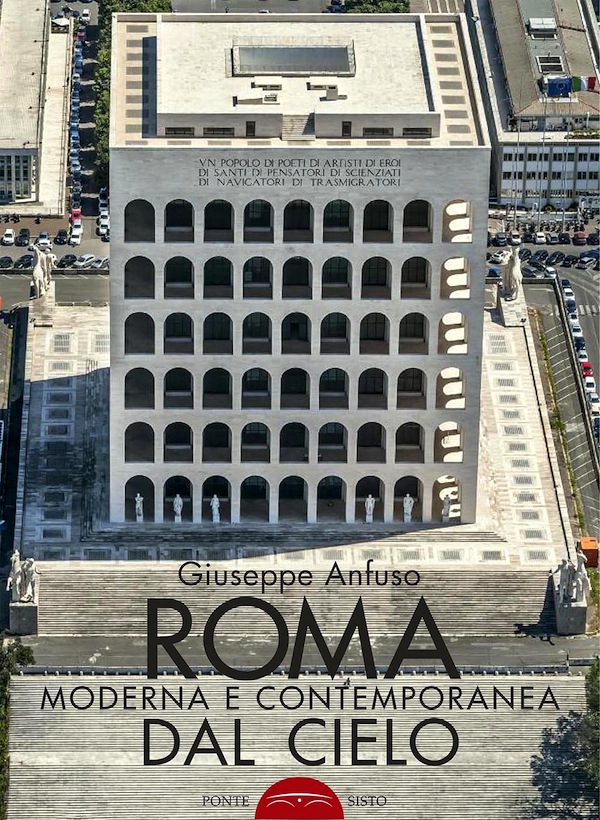 Dopo "Roma del Nolli dal cielo", l'architetto Giuseppe Anfuso torna a volare nei cieli di Roma a bordo di un elicottero per immortalare dall'alto, in più di 200 foto inedite, le più significative opere di architettura realizzate dal 1870 ad oggi, unitamente alle trasformazioni urbanistiche avvenute e ai relativi piani regolatori. Nella Roma moderna e contemporanea la pressione esercitata dai sistemi politici, economici e sociali è tale da rompere la struttura urbana. La scelta dell'autore di raggruppare le architetture moderne per funzioni ci riconduce alla storia stessa di Roma Capitale: la cittadella dello sport al Foro Italico, la città universitaria, l'EUR come centro direzionale, i nuovi quartieri residenziali; negli spazi del sociale, come teatri e gallerie, che oggi come allora cercano di dare slancio e centralità culturale.